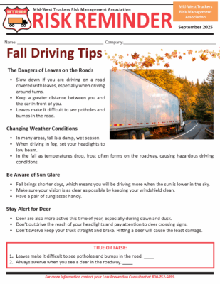 September Risk Reminder 2025 Sep 17, 2025 | Risk Reminders CLICK TO VIEW/PRINT FULL PDF LinkedIn Facebook Twitter Google+
